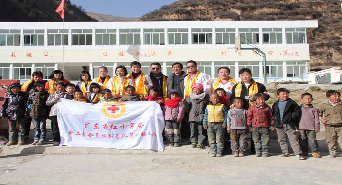 广东省红十字会企业家服务总队成员与孩子们的合影